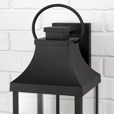 Transitional meets modern with the Bradford Large Wall Lantern. The bold lines and an oversized ring in a Black finish adds classic curb appeal to your home.