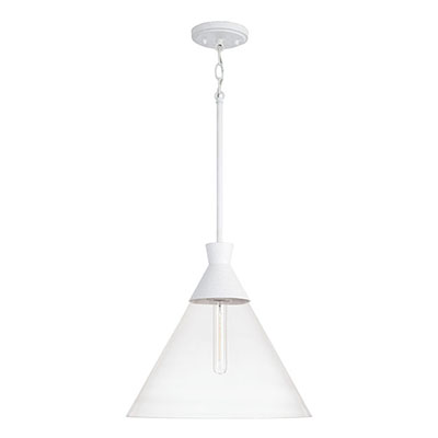 A modern shape and eye-catching contours make the Paloma Glass Pendant a standout style. The trendy tapered metal accent is complemented by the Textured Black finish, adding dimension to the clear glass.