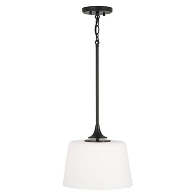 Sleek contours and flared accents create the Presley Dual Mount Semi-Flush Pendant for HomePlace. The soft white glass paired with Matte Black finish brings a classic aesthetic that mixes with any style.